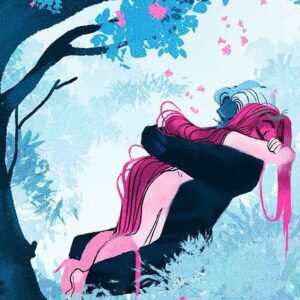 The other characters are excellent for the story and evolve in their own ways. Again, it is a treasure to see how their modern counterparts compare/contrast to the myths passed down. Zeus is too much, so extra, not always the nicest. Hera is depressed in her rapport, but she has more respect for herself here and I have to commend how she helped Persephone during her hardest times. Posideon is a total goofy surfer dude. Demeter is a savvy businesswoman and helicopter mom. Hecate is a true friend to our pretty love birds, darkly enchanting and smart as a whip. Aphrodite is lovely and lethal, but she also loves to gossip about break-ups and yell at Ares for plugging in the popcorn maker. Speaking of Ares! HA! He’s a beat-up, jocky jerk that deep down would help you with his jagged teeth. The part when he yells to talk to Persophone on the phone cracks me up so much! Artemis is a strong, independent woman, a good roomie, but I feel for her conflict on who to trust right now. Thantos is really growing on me, but now my heart is breaking for him! 🙁 And little Hebe is precious! I do look forward to learning more about Hephatasus, The Fates, Dinoyosus, Athena, Hecate, Pan, and others. Some have them have been in it very little or have not been introduced yet.