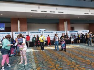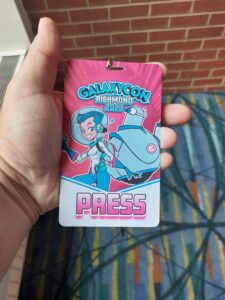 Actors, to fulfill ANY geeks delights. This is also the biggest Con that myself and Ashley Grant have ever covered., I mean the crowds are Huge, the number of guests, are huge, the number of vendors are huge….well you get the idea…..This Con is so big, they are holding it in 2 buildings of the Richmond Convention Center. We arrived at the Con, and the line was wrapped around the building(3 of the 4 sides), we found a staff person, and told them we were covering the Convention as Press, and that allowed us to skip the line and go right in to pick up our badges. The badges are actually very nice looking.
