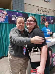 Ashley spent some time talking to Marty Grabstein who voiced “Courage, the Cowardly Dog”. He was hilarious as he was greeting people while doing the voice. Ashley got a signed first episode script, and photo, along with him agreeing to do a short interview on Sunday. I am doing an interview with Josef Rubenstein on Sunday among others I have set up.
