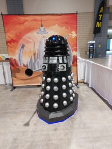 Since it was the first day, we started looking around and identifying where all the guests were, and deciding who to interview, who to get photos of, who to purchase autographs from(I am still a fan of a lot of stars). One thing I noticed was most of the guest stars did NOT take credit cards, some did, but most did not. There are plenty of ATM’s in the building, but with the amount of people realizing they needed cash, they were constantly running out of money, multiple times a day. The vendors ran a wide range from anime Vendors to MEGO Action Figure Vendors, Sword Vendors, DnD Dice Vendors, Steampunk Creators, Toy Vendors selling “Mystery boxes”, Comic Vendors and even Clothing Vendors. While I liked the way the exhibition hall was set up, I really wish they wouldn’t put oversize tables for some creators, right in the middle of the floor space, It makes navigating the aisles more difficult than it should be. Guests Included David Tennant, John Cleese, William Shatner, Johnathan Frakes, Gates McFadden, Nana Visitor, Terry Farrell, Steven Amell, Charlie Cox, Vincent D’onfrio, John Rhys-Davies, Barry Bostwick, Steve Whitmire, Corey Feldman, Sarah Douglas, Comic Creators John Romita Jr, Chris Clairmont, Scott Hanna, Josef Rubenstein, Voice Actors Paige O’Hara, Sarah Notochenny, Amanda Miller, Marty Grabstein, Dana Snyder, Authors John Jackson Miller, Mark Altman, Emily Andras, Pro Wrestlers Mick Foley, Kevin Nash, Lex Luthor, Scott Steiner, Britt Baker, Kiera Hogan, Matt Hardy and many more. If you couldn’t find a guest who made you stop and talk or even better make a purchase, you were in the wrong place.